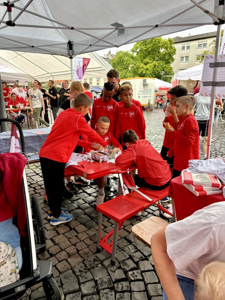 vor einer Weile fand der Kickerstag auf dem Wilhelmsplatz statt, der trotz des Regenwetters recht gut besucht war. Für uns war der Tag ein Erfolg, wir konnten erneut ein neues Mitglied gewinnen, haben gute Gespräche geführt und hatten viel Spaß.